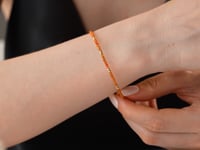 Add a touch of vibrant elegance to your jewellery collection with our Skinny Carnelian Bracelet. This minimalist piece features natural carnelian gemstones in fiery orange hues, known for their energising and grounding properties.