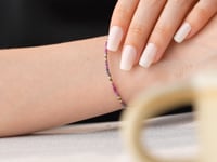 Bold, feminine and full of meaning — the Skinny Ruby Bracelet is designed for those who seek both elegance and energy. Hand-strung with shimmering natural ruby beads (2mm–3mm), this bracelet carries the symbolism of love, courage, and vitality.