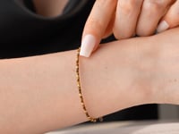 Known as the July birthstone alternative, Tiger Eye is celebrated for its protective and empowering properties. Each 2–3mm faceted bead reflects warm golden-brown tones and is delicately spaced with gold-plated accents for a refined yet natural aesthetic.