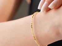This Skinny Yellow Opal Bracelet brings radiant warmth to your collection. Crafted with faceted yellow opal gemstone beads—each bead shimmering in shades from soft lemon to honey—the bracelet is enhanced with tiny gold accents for a touch of refined elegance.